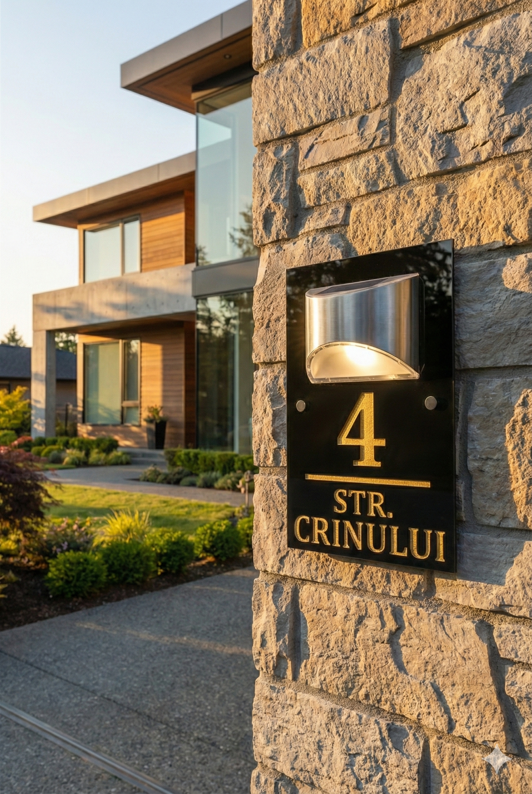 Număr de casă cu lampă solară